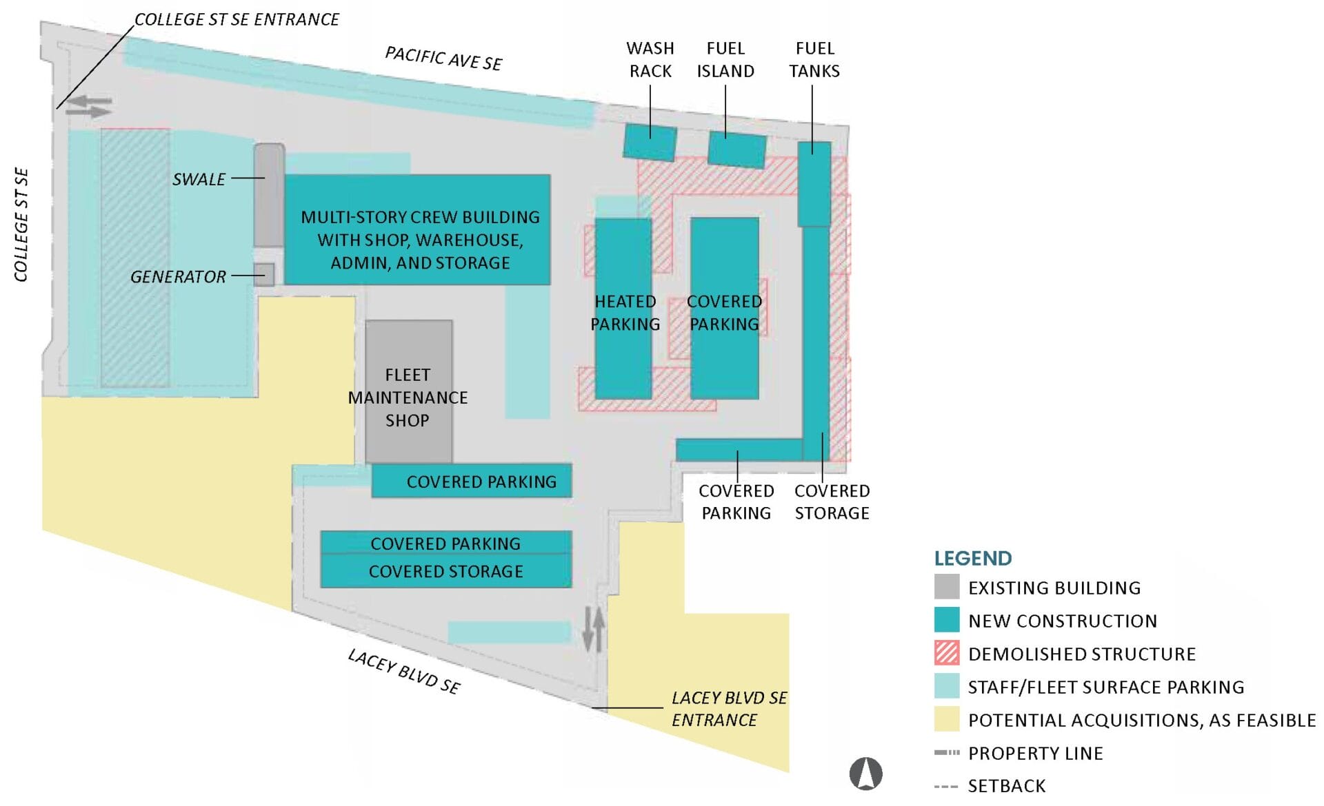 MAKERS worked with the City of Lacey to assess their primary governmental facilities and develop near- and long-term recommendations that can be folded into a new Capital Facilities Plan. Evaluation of the citywide facility portfolio helped city leaders understand the critical needs of city hall, public works, operations center, and animal services facilities. The plan’s recommendations will help the City focus investment where needed and leverage investment opportunities while being flexible to change.